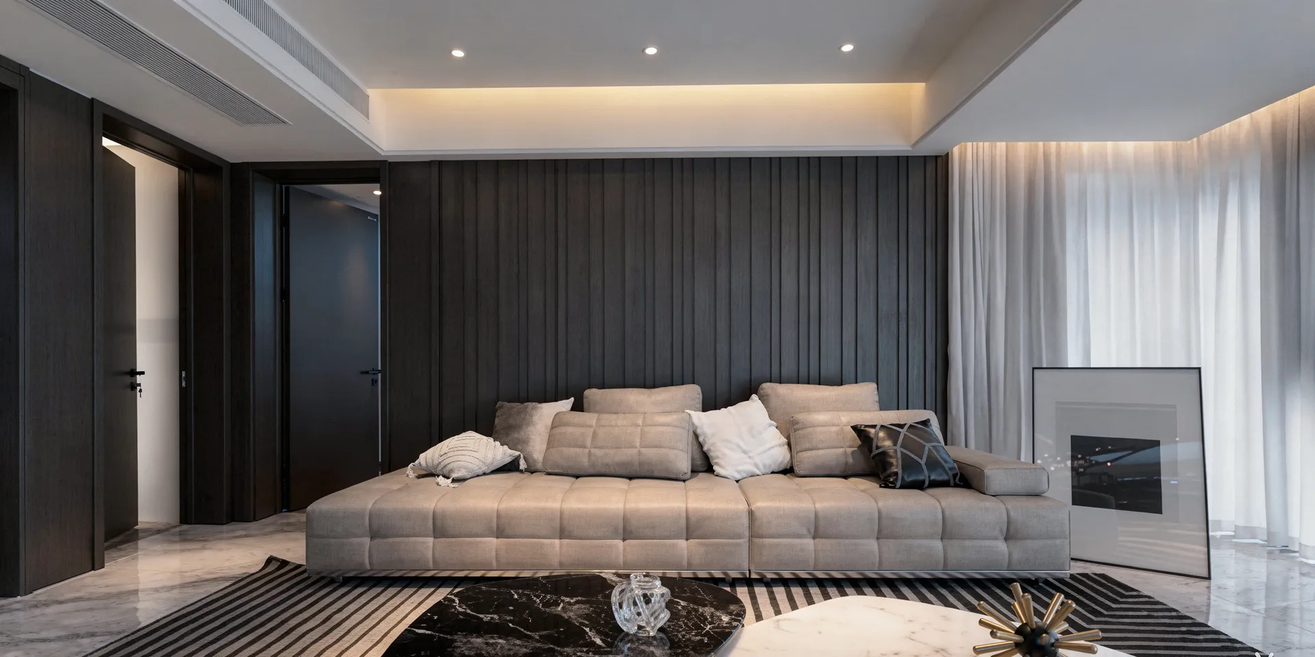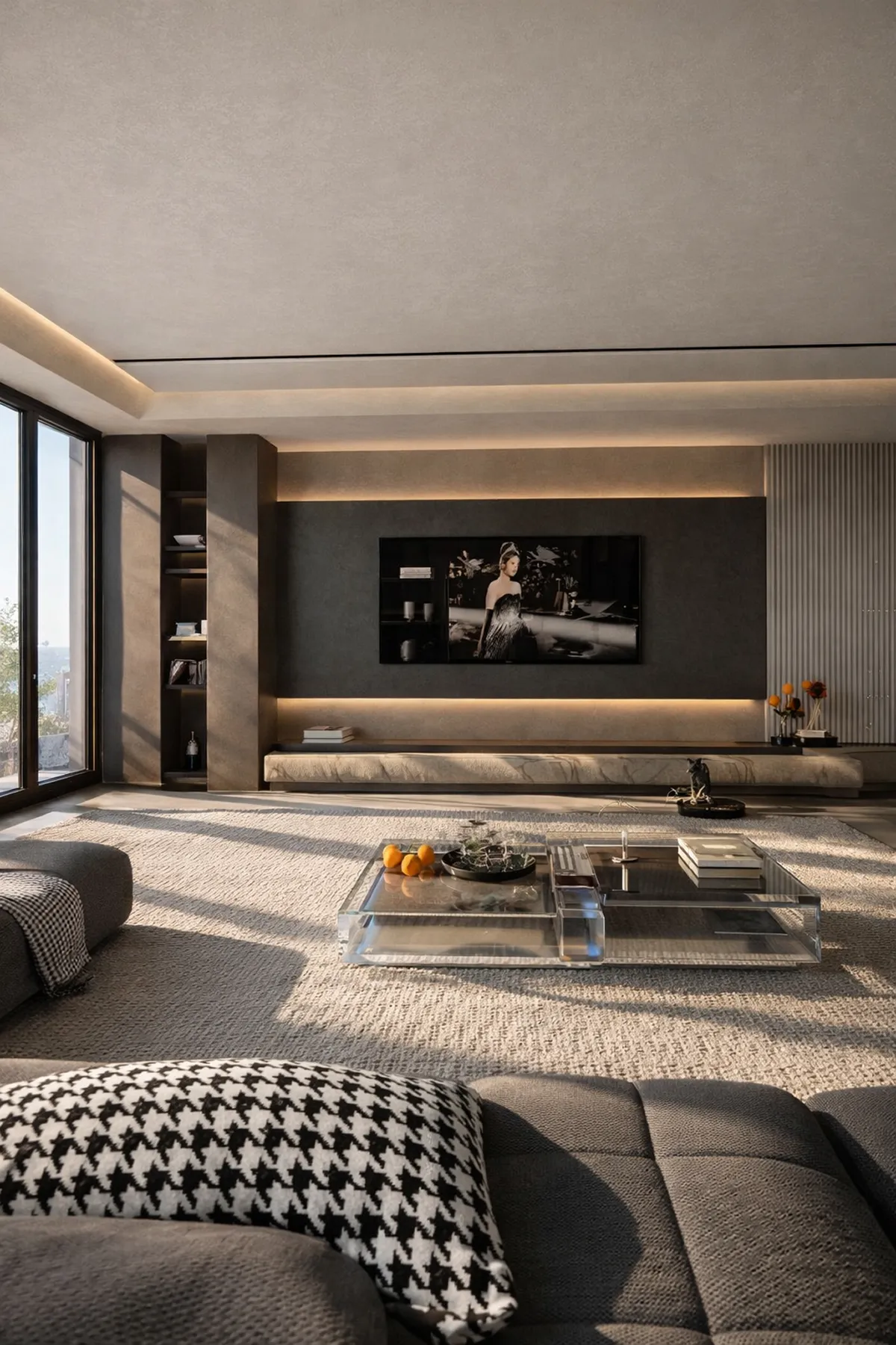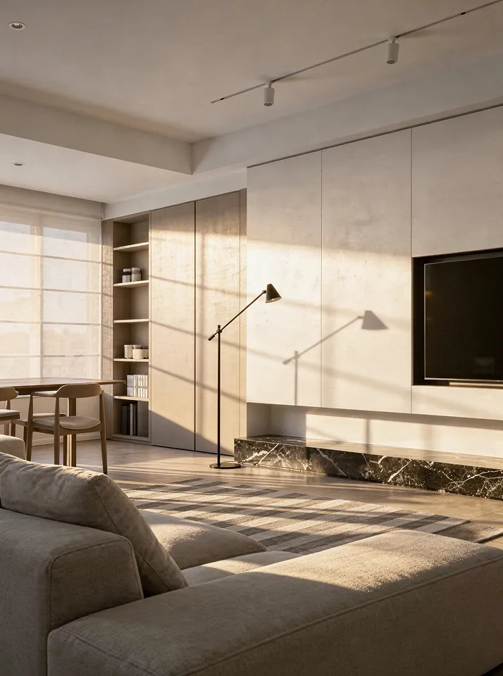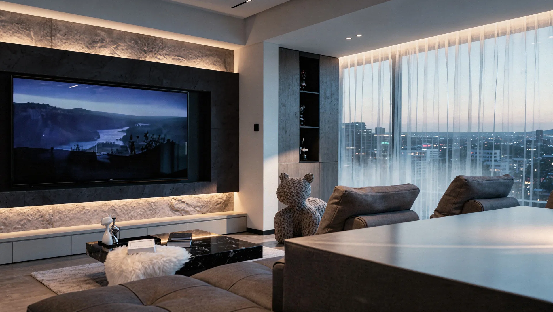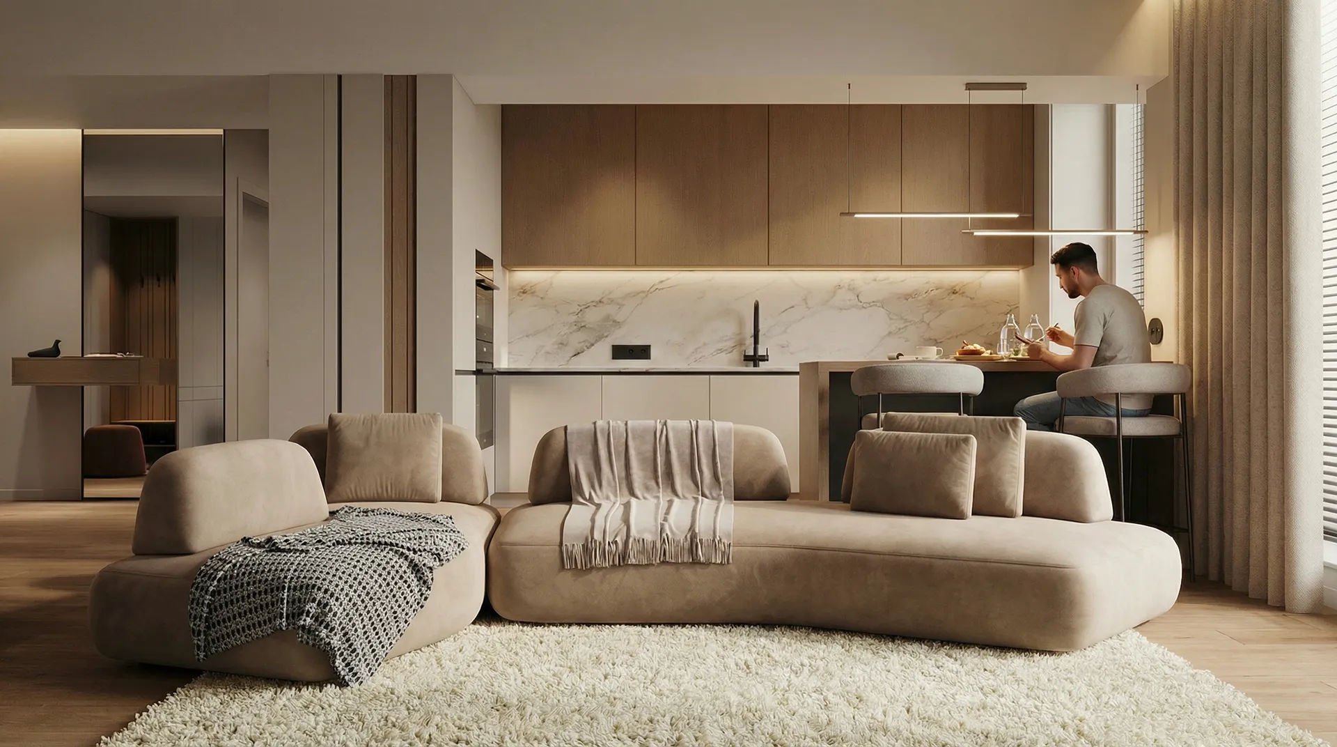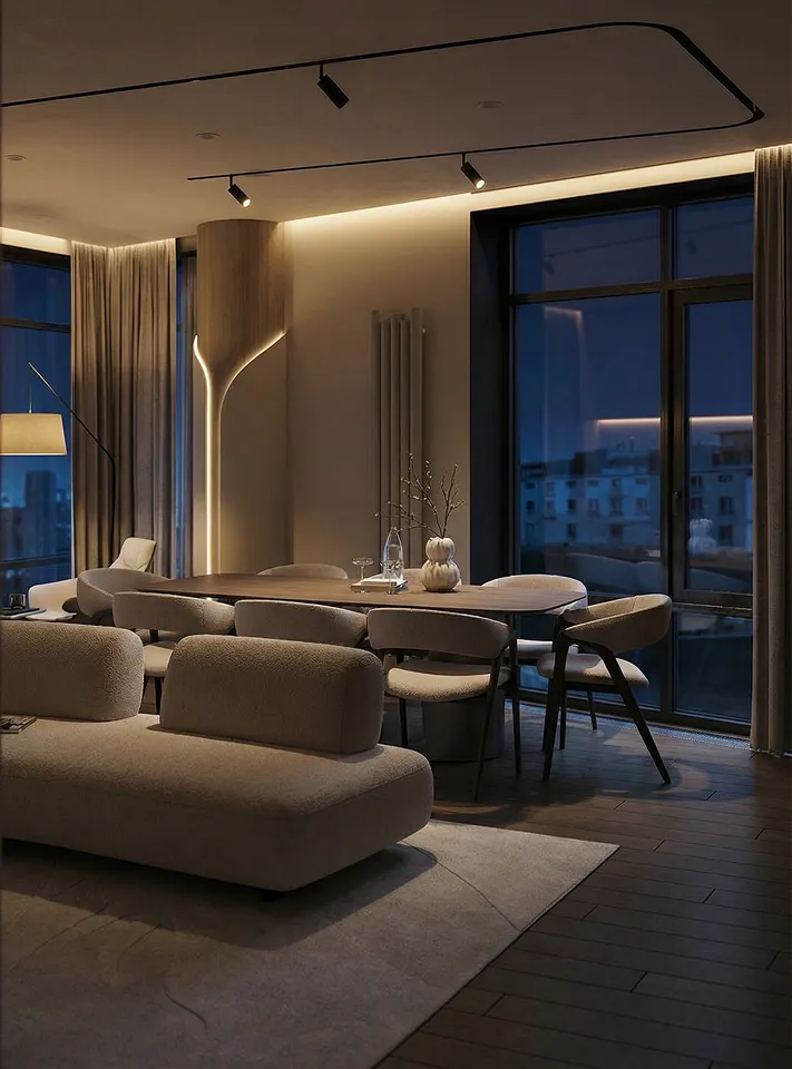Этот интерьер — визуальная проекция характера владельца. Прямые линии и лаконичные формы отражают его прямолинейность и целеустремленность, как острый клинок, отсекающий всё лишнее.